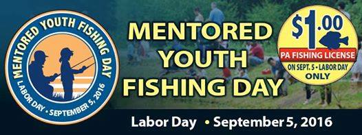 Courtesy of the Pennsylvania Fish and Boat Commission, Labor Day, September 5th is 'Mentored Youth Fishing Day'.