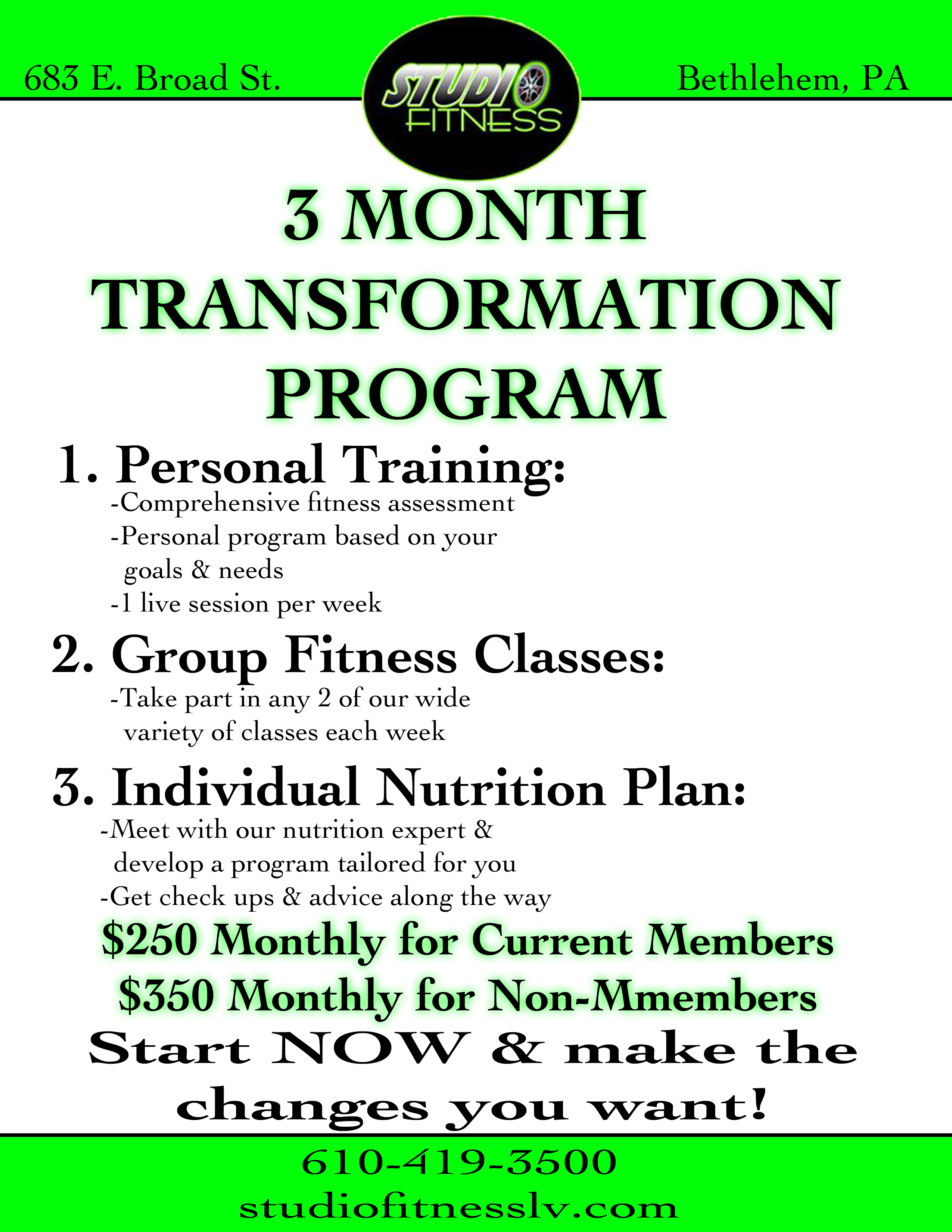 An assesment, weekly personal training session, 2 group fitness classes and personal nutrition plan. Make the changes you've been wanting.
