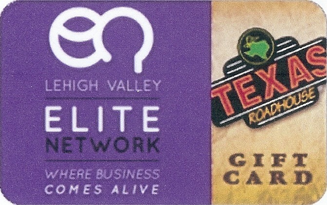 Stephen Hagan, Managing Partner at Texas RoadHouse - Trexlertown has offered a great opportunity to the Lehigh Valley Elite Network Members. The Texas Roadhouse - Trexlertown, at no cost to you, will be offering a five dollar Co-Branded Gift Card with your Logo, to be distributed at the Lehigh Valley Elite Network Event on 10/28/14 at 11:00. These cards will allow you to see the Gift Card using your brand and the nationally recognized Texas Roadhouse brand in time for the holidays. Any questions, please refer to Nichole Grover- Marketing Manager Texas Roadhouse at store_trexlertownpa@texasroadhouse.com. (610) 395-2611.