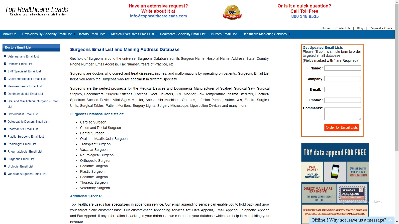 We at Top HealthCare Leads offer can-spam compliant surgeons email list on their request. So do not hesitate to take the smart step for your business. Acquire our healthcare email addresses to drive better traffic and generate quality leads.
