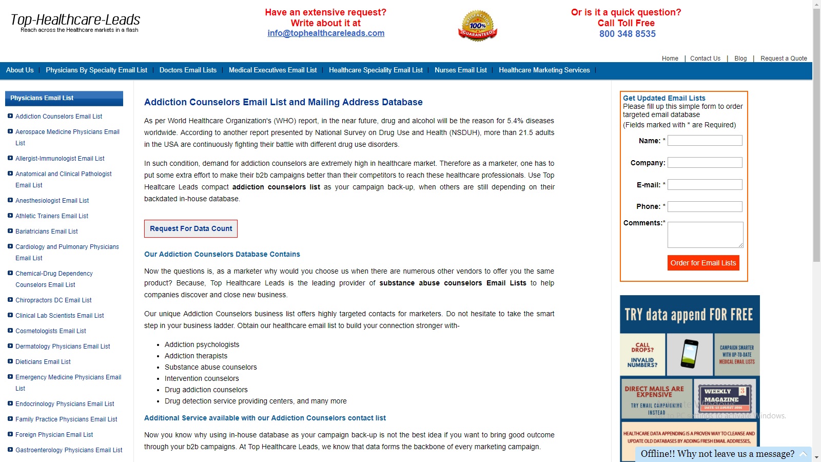 email at: info@tophealthcareleads.com